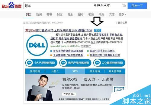 但是,近来发现,放在首位的戴尔官网,往往会有打不开页面的情况。通常这是宣传、推广网页过期了的结果(未及时更新),再往下拉,点击戴尔官网(蓝色的官网字样)的另一个链接就可以打开戴尔官网了。