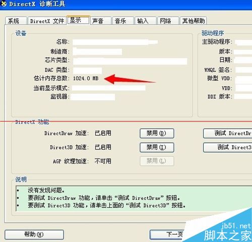 5、选择显示之后就会进入到显卡的详情页,此时我们就可以看到显卡的详细信息了,当然包括显卡的大小。在“估计内存总数”后方会有一个数值,这个数值就是显卡的大小。