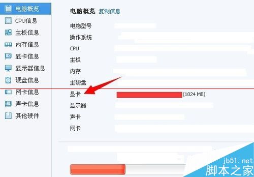 4、检测完成之后会出现如图所示,此时我们可以看到“显卡”的后方就会显示显卡的大小是多少了。