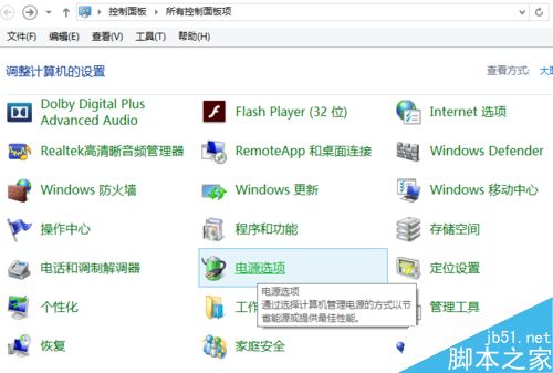 1、首先,打开我们电脑的 控制面板的界面。一般的电脑都可以在桌面上找到,或者在右下角的自定义中也有。打开控制面板选项后,我们会看到如下界面,找到电源选项。