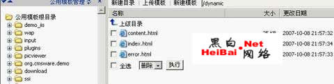 看起来功能还真的很强大,就各个功能都看一下吧。作为演示版,后台许多功能肯定限制了,不限制的话,早被K了,本人也想看看作者都限制了些什么。下面就按检测的步骤来叙述本文。找了各种有关编辑的选项,模版管理这里也许会有问题,进去随便找了个目录,如图2
