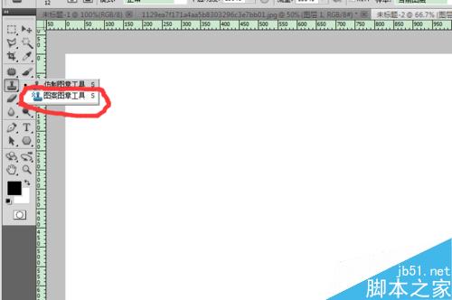 将工具调到“图案图章工具”,再将上方的图案选为自己要的样式。
