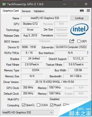2、显卡数据一览,核显示GT2核心 最高频率1050