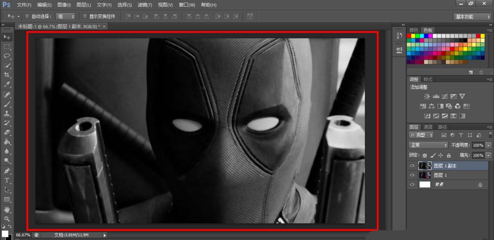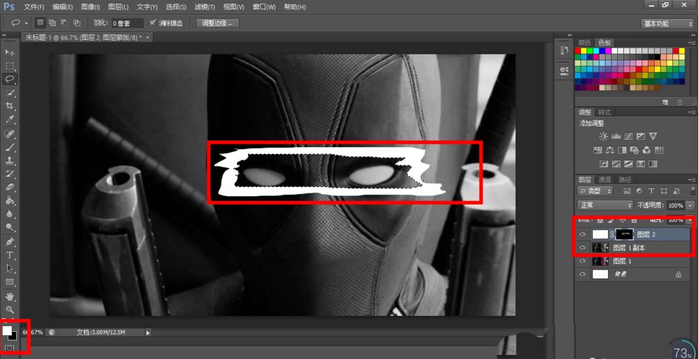 10、然后将背景色与前景色恢复默认,选择之前去色的图片给它建立蒙版,然后用黑色笔涂抹撕纸效果区域内。