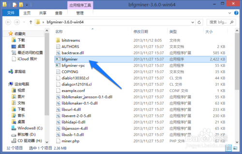 1、打开挖矿目录以后,双击点击打开目录下的“bfgminer”文件,如图所示