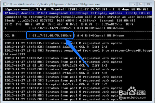 7、如果要关闭挖矿工具,直接 X 掉即可,也可以直接按 Q 键退出。如果想要多开几个的话,在 BFG miner 目录中再打开一个挖矿工具即可。