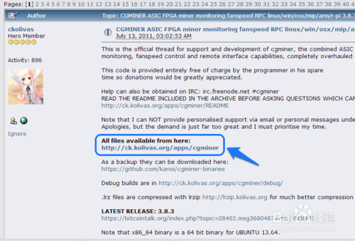 2、随后会跳转到 CGminer 的下载页面,点击如图标注的链接。