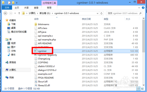 5、打开CGMiner的目录,找到“CGMiner ”,如图所示