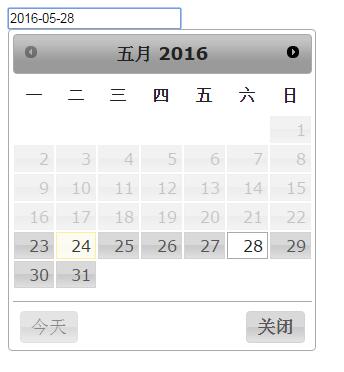 currentText : '今天',//设置当天按钮的文本内容,此按钮需要通过showButtonPanel参数的设置才显示。