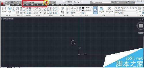 1、打开CAD,点击工作空间右侧的倒三角,进入“三维建模”工作空间。