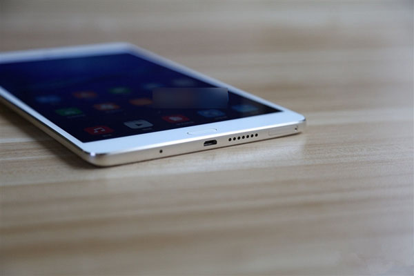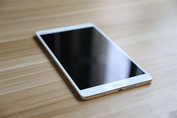 该平板采用了轻薄金属机身设计,边缘厚度4.6毫米,重量310克,前置Home实体键支持指纹识别,支持轻触返回、长按主屏、左右滑动等四种手势。