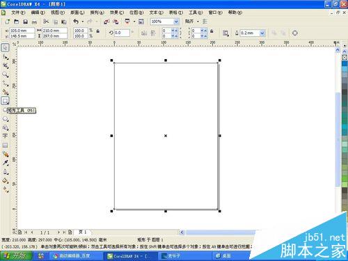 2、做菜单的背景图,可以导入喜欢的背景图片素材,然后调整与菜单菜谱同样的大小,也可以自己绘制。这里我们来简单绘制一张背景图,双击工具栏上的“矩形工具”按钮,可以得到一个与页面大小一样的矩形。默认是A4大小的页面。