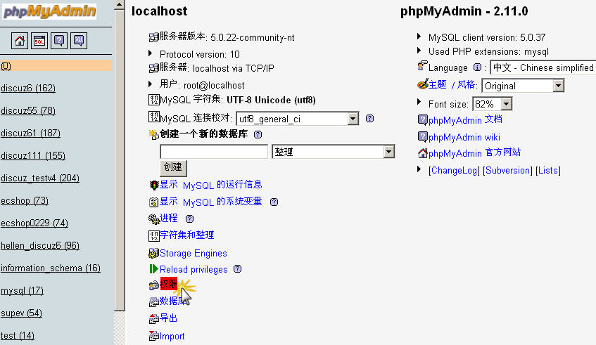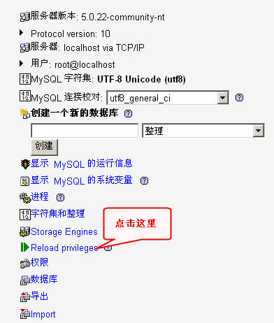 修改完用户权限以后需要回到 phpMyAdmin 的首页,重新加载一下授权