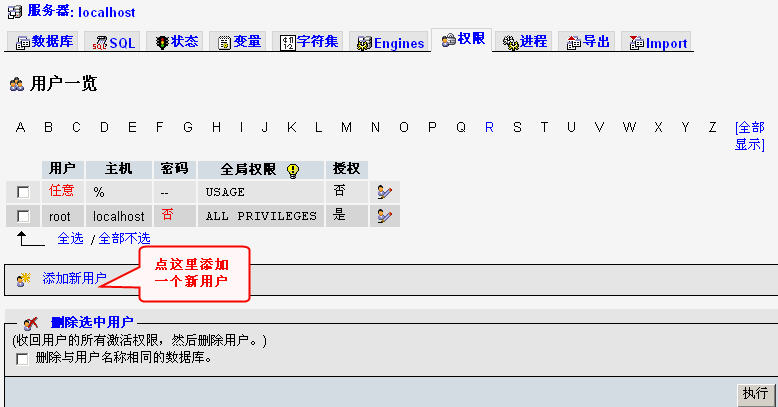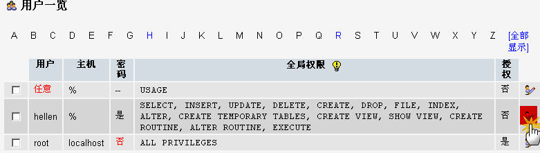 以上就是动人镜子最近收集整理的关于如何用phpmyadmin设置mysql数据库用户的权限的全部内容,更多相关如何用phpmyadmin设置mysql数据库用户内容请搜索靠谱客的其他文章。