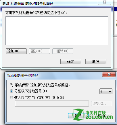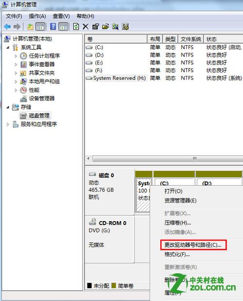右键“system reserved”分区,选择“更改驱动器号和路径”