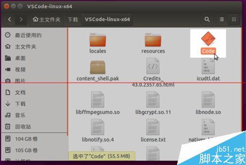 8、解压完成,进入与软件压缩包同名的文件夹,在一个名为 Code 的可执行文件上双击。