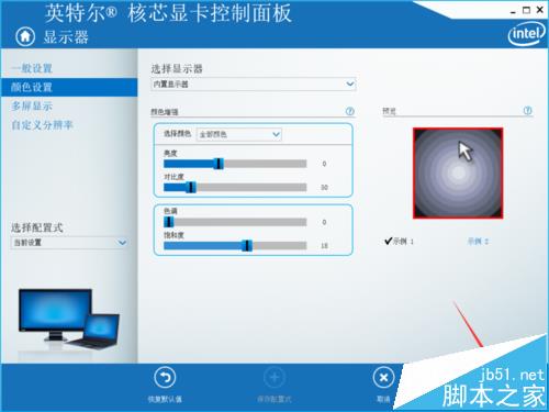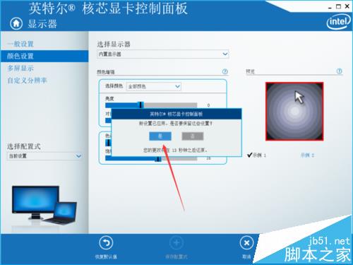 4、接下来我们需要调整饱和度,和许多电视机设置一样很简单。小编建议设置16度左右数值,设置好以后点击应用这个时候大家就会发现屏幕颜色正常了。