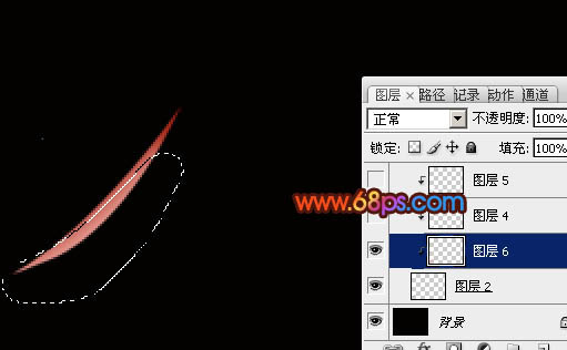 3、新建一个组,在组里新建一个图层,用钢笔勾出下图所示的选区,填充暗红色。