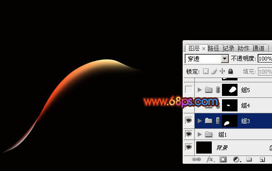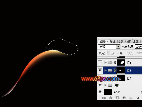12、在组里新建一个图层,用钢笔勾出下图所示的选区,填充橙黄色。