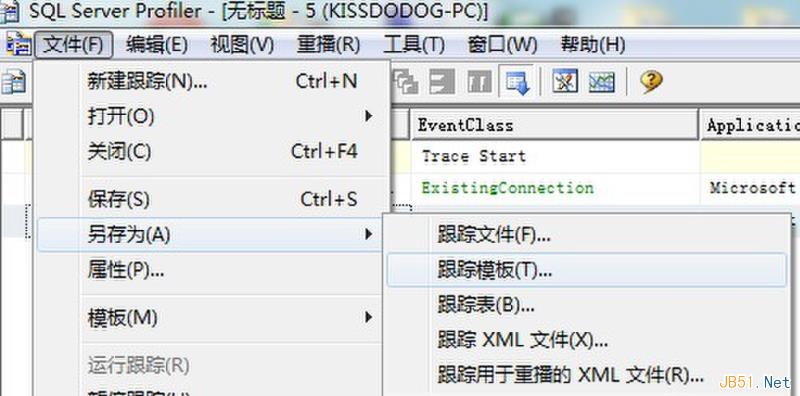 创建一个新的跟踪。和前面一样定义事件,数据列和过滤器。从文件=》另存为菜单将跟踪定义保存为跟踪模板。