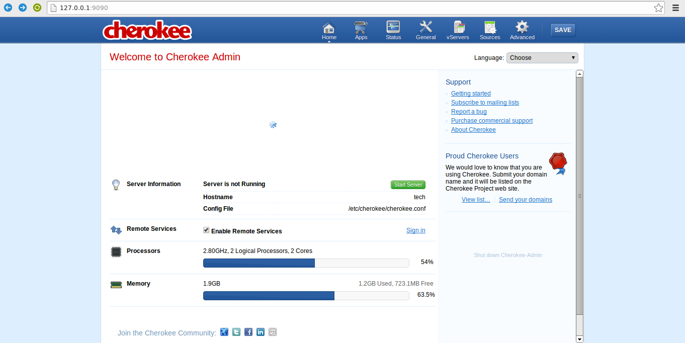 好了,到这里我们已经成功地在Ubuntu Server上安装和配置了Cherokee。