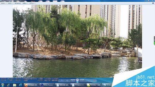 1、这个图片是一个小区的环境景色,拍下来感觉不错,想设为电脑桌面
