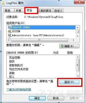 第十一步:获取“C:\Windows\System32\LogFiles”文件夹权限并保证以上服务全部开启,即可解决宽带拨号711错误。