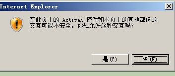 在此页上的ActiveX控件和本页上的其他部分的交互可能不安全。你想允许这种交互吗?