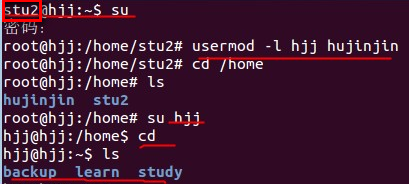 4、可知修改成功了,不过,我的hjj用户的主目录的文件夹的名字还是hujinjin,并没有改为hjj。