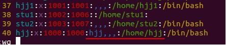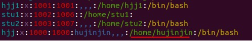 我们想要的效果还是没有达到,我们尝试将hujinjin文件夹改名为hjj,文件夹改名后.但是问题出现了,现在找不到hjj用户的家目录,那么我们只有将系统中存储的hjj的主目录由hujinjin改为hjj.