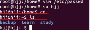 6、修改完成后,我们在root用户下切换到hjj用户,发现能够正常切换到用户主目录了,如下: