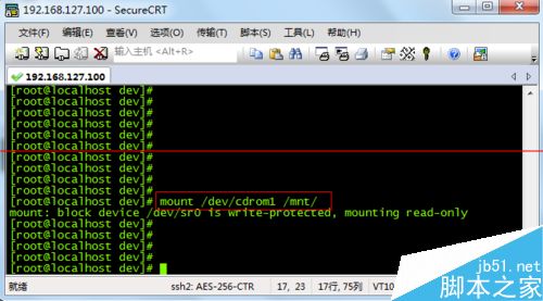 2、可以看到光盘的名字叫做:cdrom1。然后在命令行执行: mount /dev/cdrom1 /mnt/。这会把光盘挂载到/mnt目录下。然后我们就可以通过访问/mnt来访问光盘。