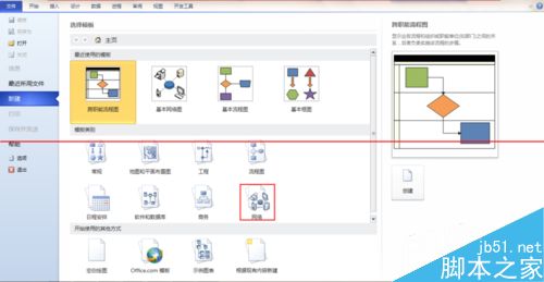 2、点击模板类型里的【网络】,在该模板下可以找到【基本网络图】和【详细网络图】,如果我们仅仅画一个简单的网络拓扑图,可以选择【基本网络图】,如下图所示。