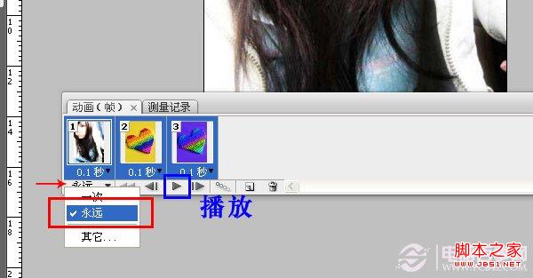 8、调整动画的闪烁次数为“永远” ,点击播放