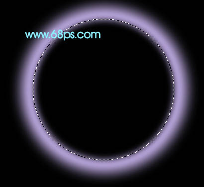 1、新建一个1024 * 768像素的文件,背景填充黑色,然后新建一个图层,用椭圆选框工具拉一个较大的正圆选区,按Ctrl + Alt + D 羽化15个像素,然后填充颜色:#AC9BCF,如下图。