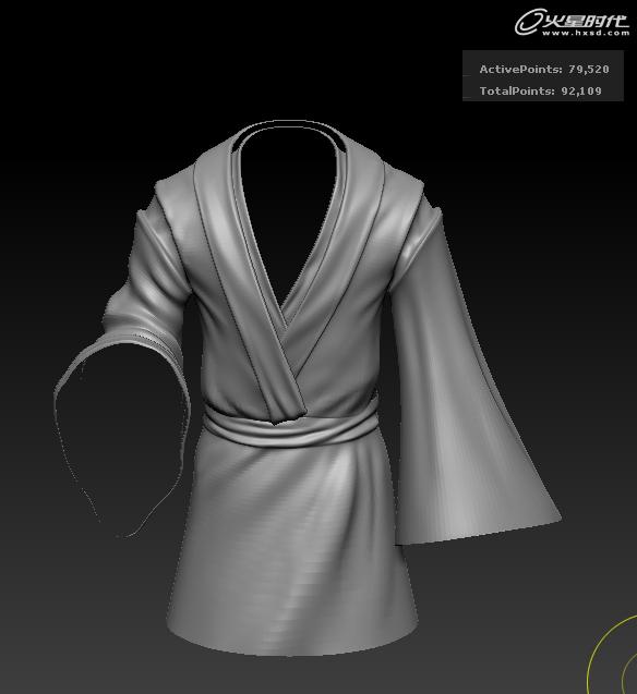 图06衣服我选择用ZBrush制作,然后将高模导入到3ds Max中进行加工。面数需要控制,以MAX2009来说(内存2G),50W三角面的模型还能正常进行操作,面数再高的话就比较麻烦了。所以在ZB中就要对面数有所控制。还有一点需要注意,就是在导到ZB前一定要把UV分好并确定好摆放位置,因为从ZB导回来的模型面数很高,基本没法对UV进行任何操作而且很容易卡死机。(图07、08)