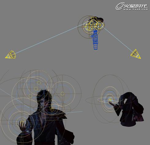 图15因为右手上有一团火焰,在右手上加了一个泛光灯。不需要亮度太强,这些灯光效果都可以在后期中修饰。(图16)