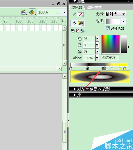 FLASH里面的混色器是一个很重要的工具,放射状设置,可以设置出很多的颜色样式,下面小编就为大家详细介绍一下,一起来学习吧!