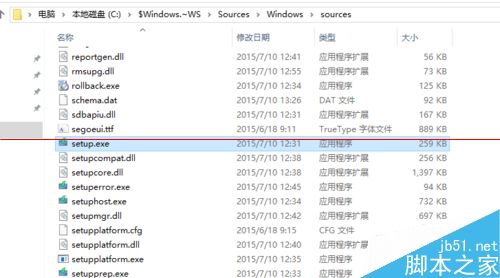 1. 打开C:\$Windows.~WS\Sources\Windows\sources其中 $Windows.~WS为隐藏文件夹 。