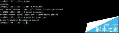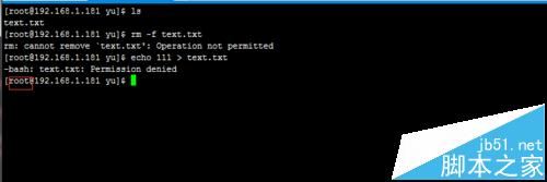 1、首先删除一个文件,提示'Operation not permitter',普通用户不能删除;