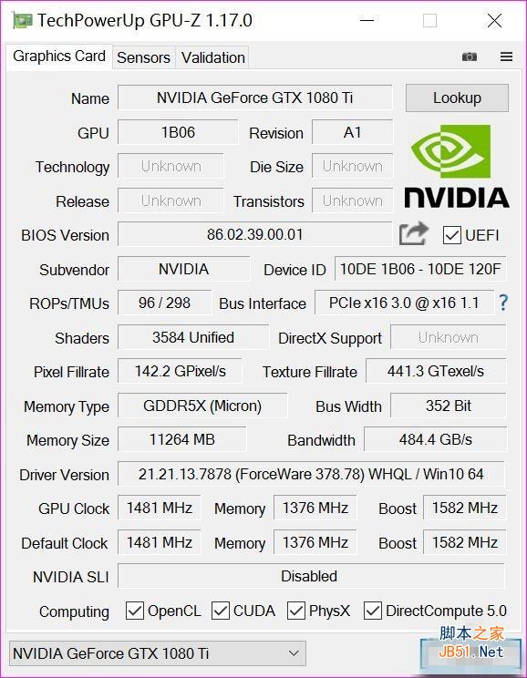 GTX1080Ti使用与TITAN X同款的GP102核心