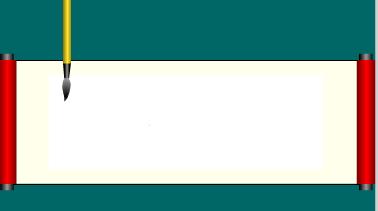 新建元件,命名“笔”,行为:图形。方法同卷轴的制作方法相似,只不过在上端画上挂绳,下端用任意变形工具,按住ctrl键调整出上宽下窄,笔尖使用圆形工具填充线性渐变,然后使用实心选择工具(箭头)调整出毛笔尖形状。