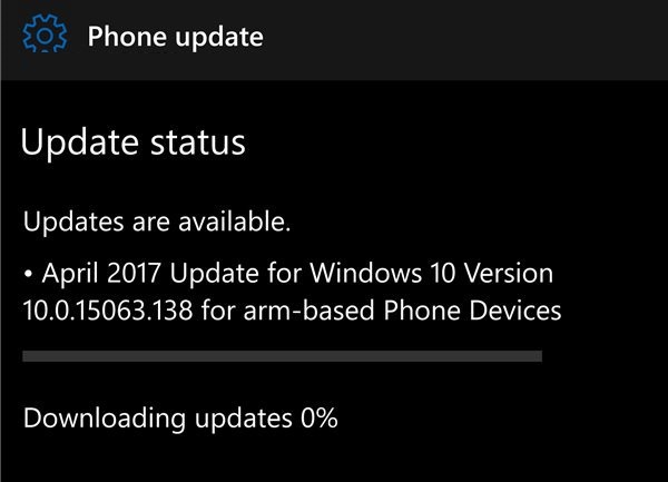 此次为基于15063的累计更新,并不会带来全新的功能,主要为系统稳定性修复,建议Win10 Mobile用户保持电量40%以上,在WiFi环境下下载更新。还未收到Win10创意者更新15063推送的用户请进行手动检查。