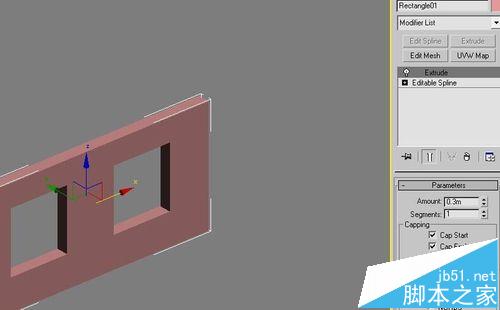 2、【Rectangle】做玻璃,挤出厚度【Extrude】为0.1m,附玻璃材质