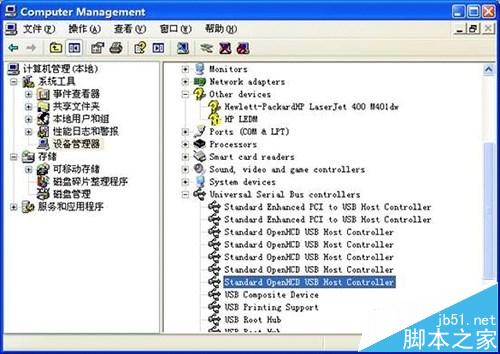 2、删除设备后选扫描检测硬件改动,这时设备管理器会出现4个设备,其中有USB Pringt Support