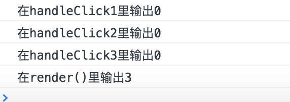 我们对handleClick做一些修改,让它变得复杂一点,在调用handleClick的时候,依次调用handleStateChange1 ,handleStateChange2,handleStateChange3,它们会调用setState分别设置value为1,2,3并且随即打印