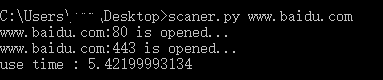 以上就是怕孤独汽车最近收集整理的关于Python实现简易端口扫描器代码实例的全部内容,更多相关Python实现简易端口扫描器代码实例内容请搜索靠谱客的其他文章。