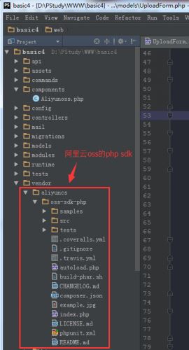 主要思路,首先用composer下载阿里云oss的php sdk,然后自定义一个组件,就能够在全局调用阿里云oss了。