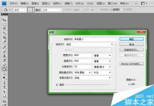 1、打开PS软件,新建一个画布,800*500像素,并用油漆桶填充成黑色。