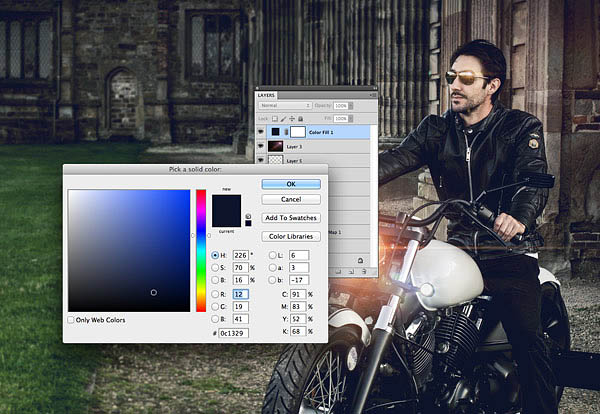 10、增加一个颜色填充调整层,颜色设置为深蓝(#0c1329),确定后把混合模式改为“变亮”。